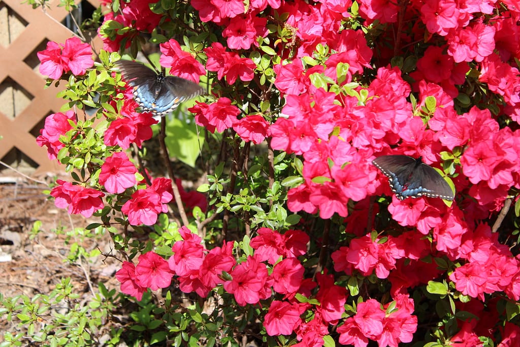 If you have an azalea you love and want to have 3 or 4 of the same kind across the front of your house, then propagate your azalea. I’m afraid if I bought some at the store they wouldn’t match and I wanted them all the same. I cut/ripped some azalea branches right off the trunk of the bush. I also took a couple that were growing up from a buried root in the ground several inches from the base of the bush. These are the best to take because I wouldn’t want them growing there anyway. I dug a hole, stuck 4-5 twiggy branches in, and covered it with dirt and pine straw from my pine trees. I did this in the summer where it rains nearly every day, but if you don’t get much rain, then water it every day or two. A few of the branches may die, but that’s ok. The others will grow quickly and in a few years fill out to be a big beautiful bush. Let me know how it goes!