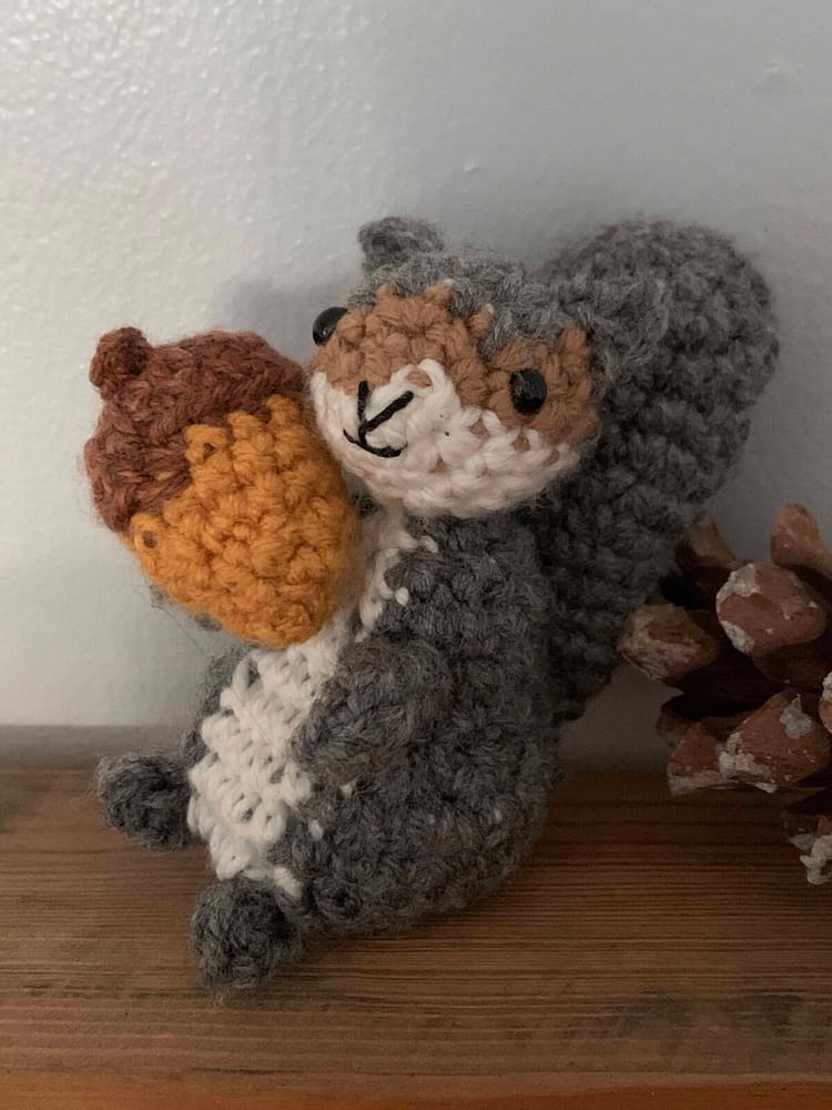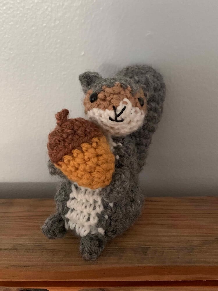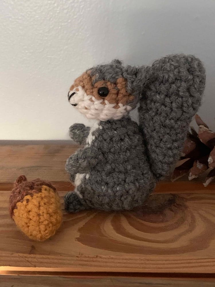 Most adorable crocheted squirrel ever!! Perfect little face. Tail shaped just right. Comes with an acorn.