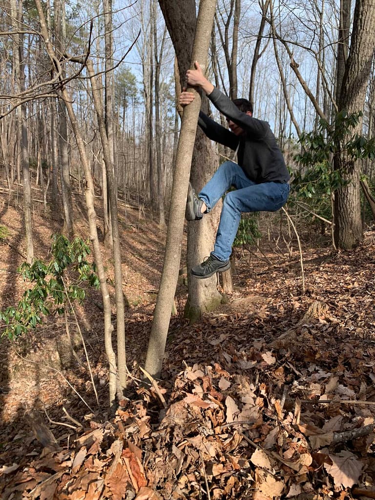 - Thomas goofing off in the woods