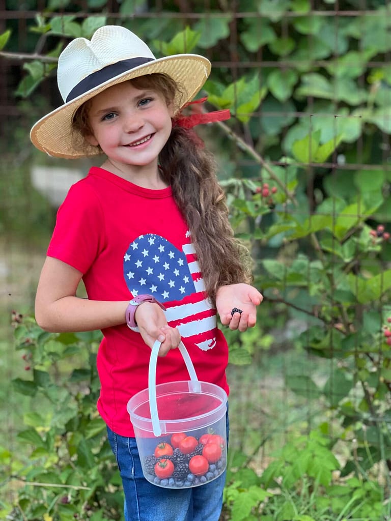 Talea looked adorable picking berries while I watered the pumpkin patch.